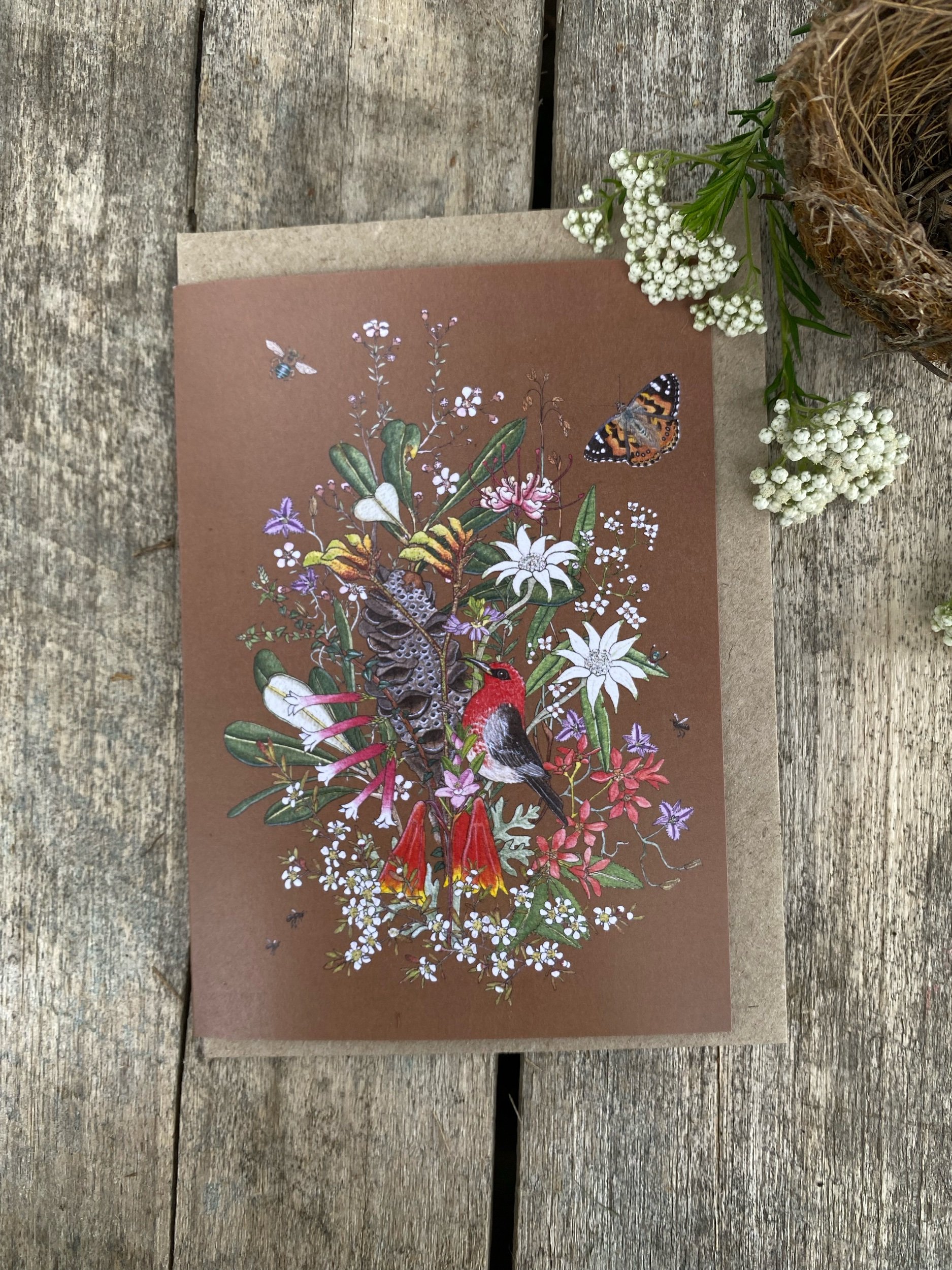 A6 sized gifting cards. Printed on 100% recycled 350gsm card paper, with recycled brown paper envelope.